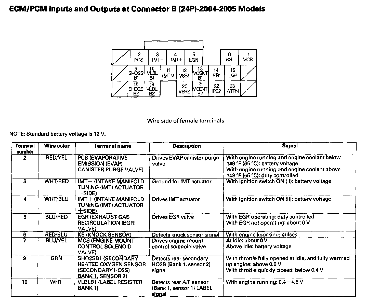 ECM/PCM Inputs And Outputs At Connector B (24P) Part 2: