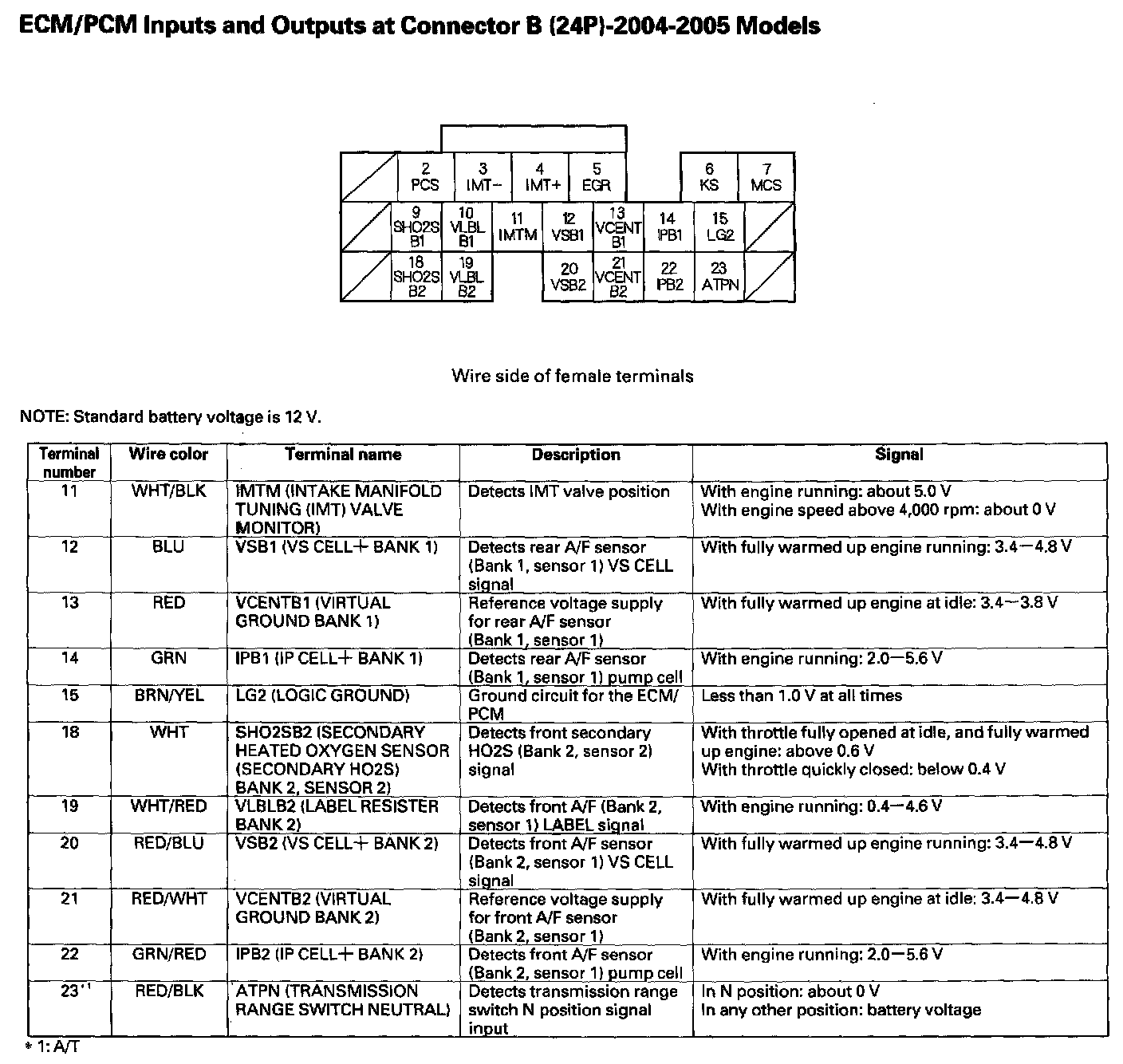 ECM/PCM Inputs And Outputs At Connector B (24P) Part 1: