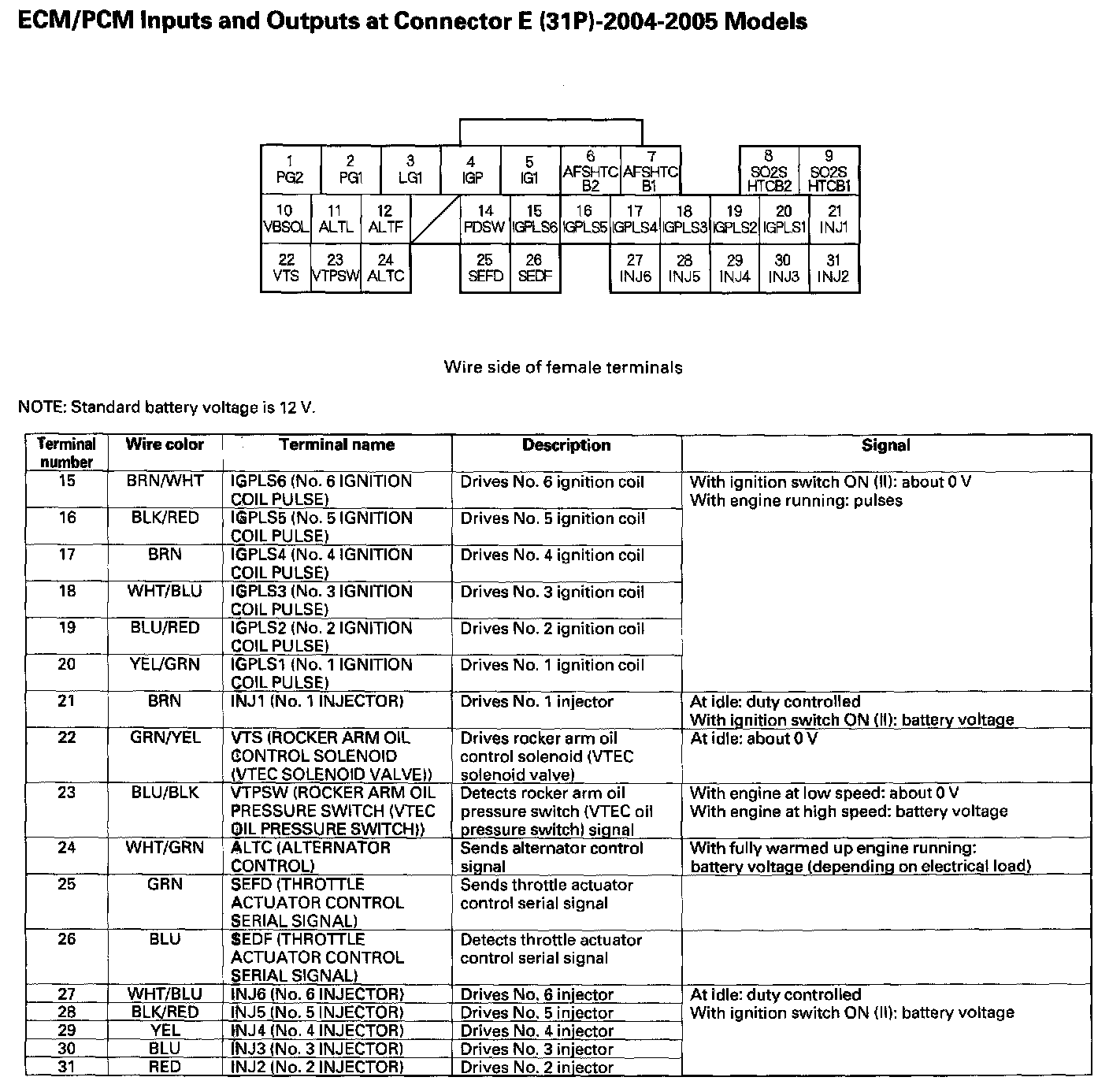 ECM/PCM Inputs And Outputs At Connector E (31P) Part 2: