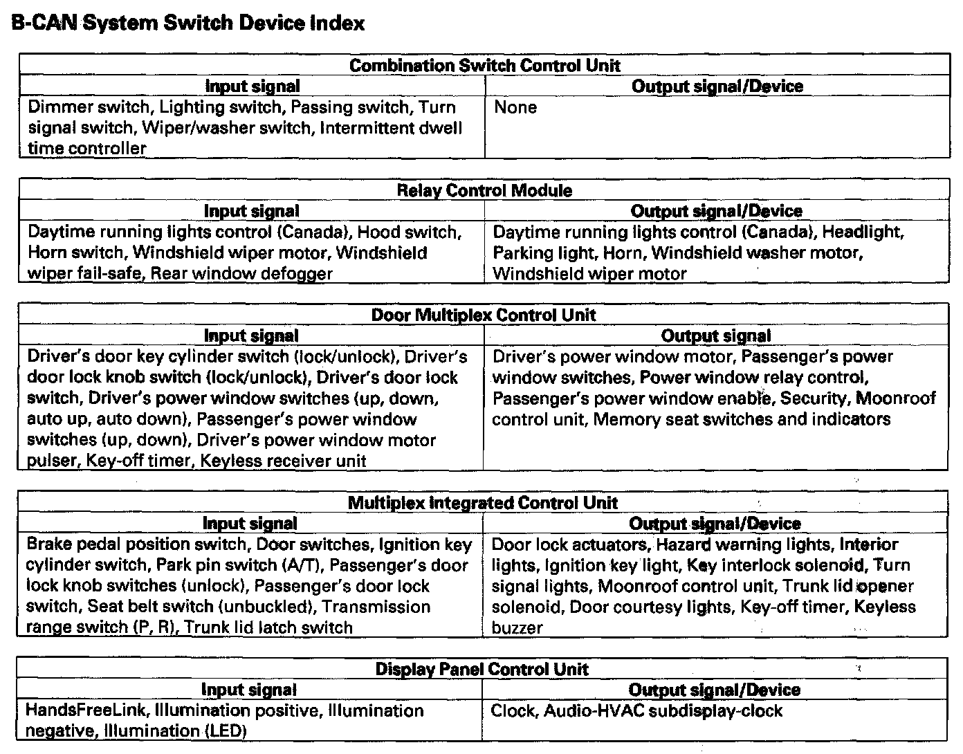 The ECUs on the B-CAN and the F-CAN transmit and receive information in the form of structured messages that may be received by several different ECUs on the network at one time. These messages are transmitted and received across a communication circuit that consists of a single wire that is shared by all the ECUs on the circuit. Since messages on the F-CAN are typically of higher importance, a second wire is used for communication circuit integrity monitoring. A backup circuit is also added to the headlight and wiper circuits on the B-CAN in the event of a network wire or ECU failure that would effect the operation of the system.