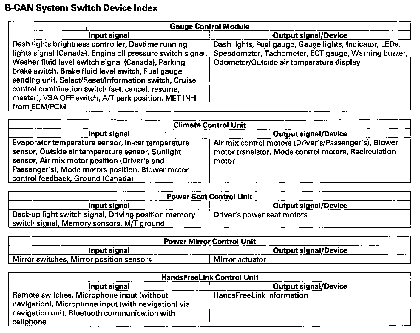- HandsFreeLink control unit