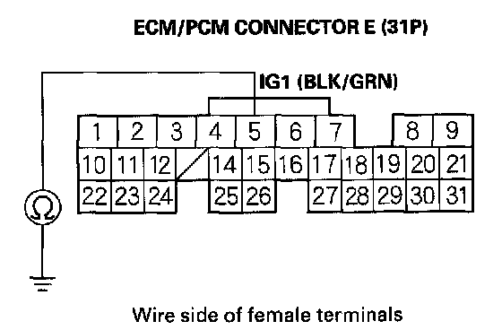 37. Check for continuity between ECM/PCM connector terminal E5 and body ground.
