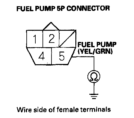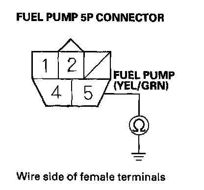 43. Check for continuity between fuel pump 5P connector terminal No.5 and body ground.