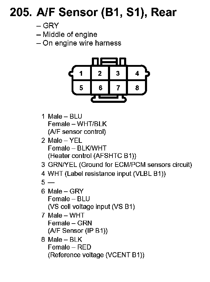205. A/F Sensor (B1, S1), Rear: