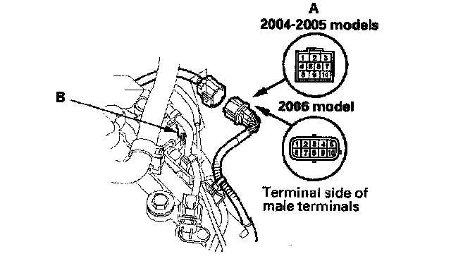 Transmission Range Switch Test1. Remove the transmission range switch harness connector (A) from the connector bracket (B), then disconnect the connector.
