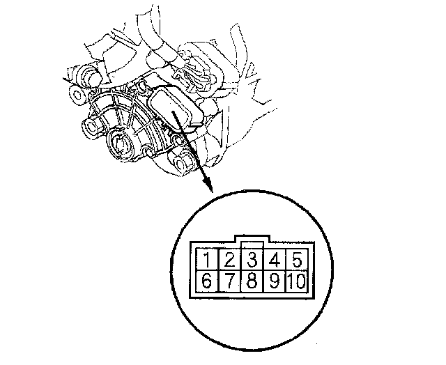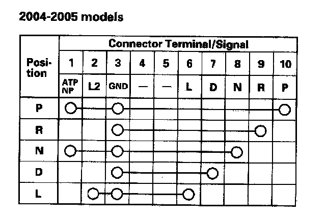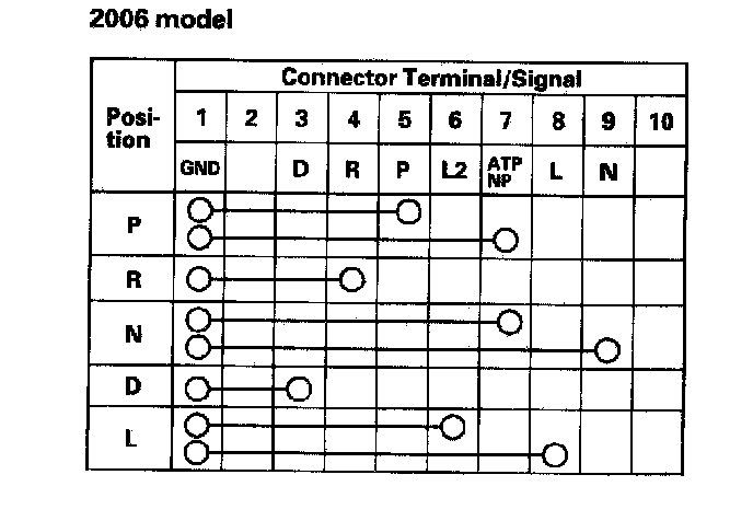 3. If the continuity between any of the terminals is incorrect, remove the transmission range switch cover, and disconnect the connector at the switch.