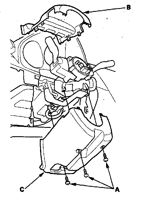 8. Remove the column cover screws (A), then remove the column covers (B, C).