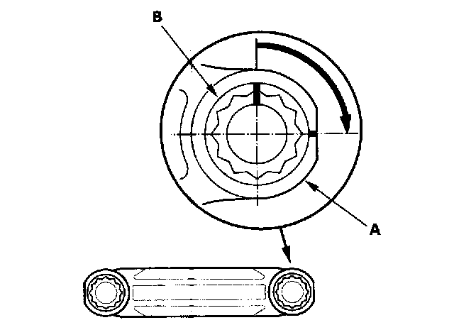 Mark the connecting rod (A) and bolt head (B) as shown.