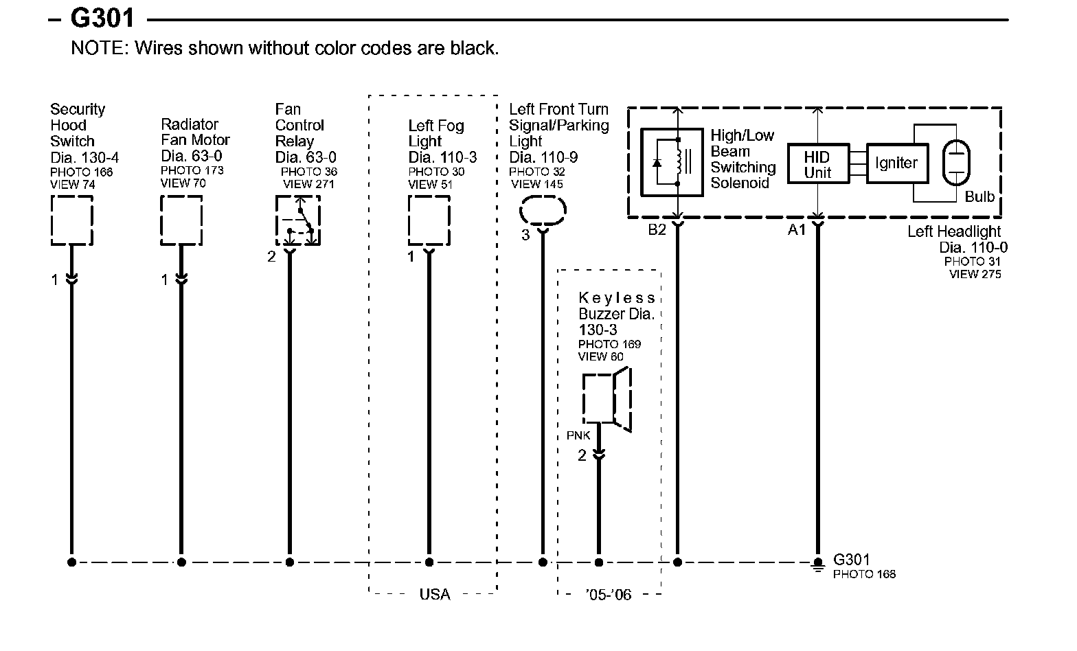 Connector Views: Connector terminal views (references to VIEWS) referred to within these diagrams can be found at Connector Views by View Number. Connector Views By View Number
