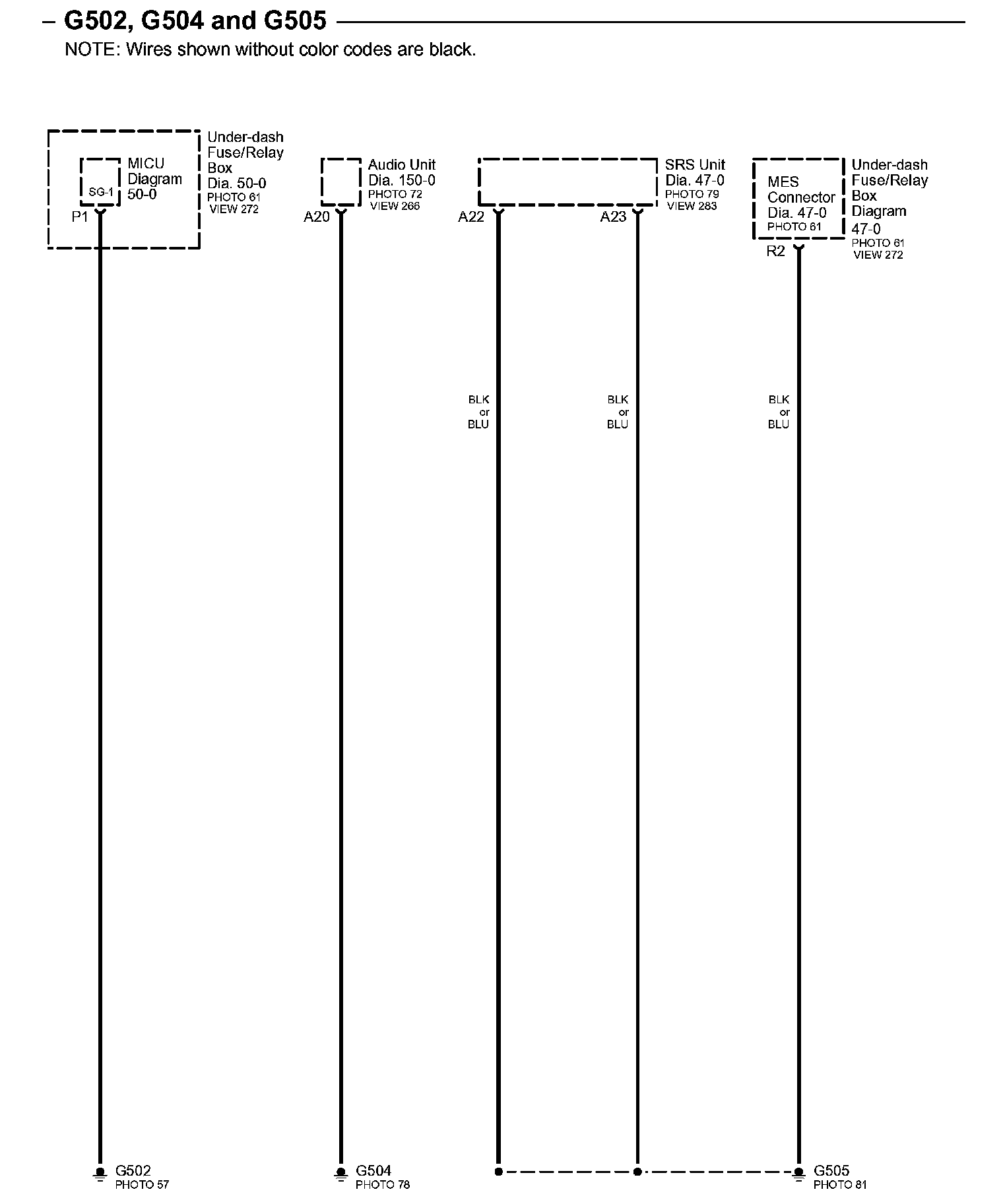 Connector Views: Connector terminal views (references to VIEWS) referred to within these diagrams can be found at Connector Views by View Number. Connector Views By View Number