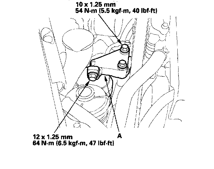 13. Install the side engine mount bracket. Tighten the bolts to the specified torque.