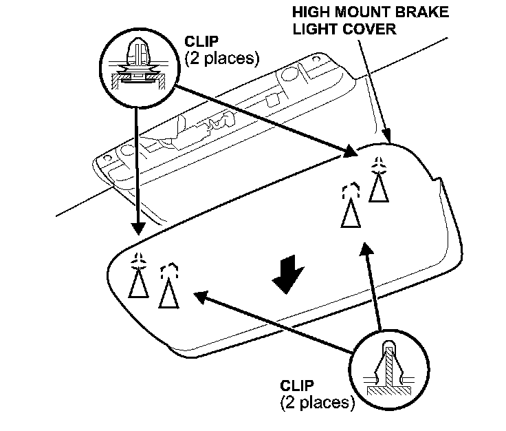 1. Pull down on the high mount brake light cover to release the four clips.