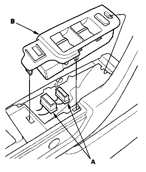 2. Remove the screw and disconnect the connectors (A) from the master switch (B), then remove the switch assembly from the door panel.