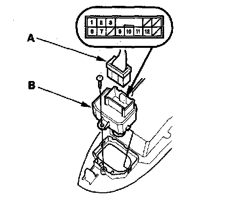 2. Disconnect the 13P connector (A) from the power mirror switch (B).