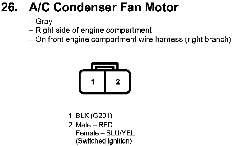 26. A/C Condenser Fan Motor: