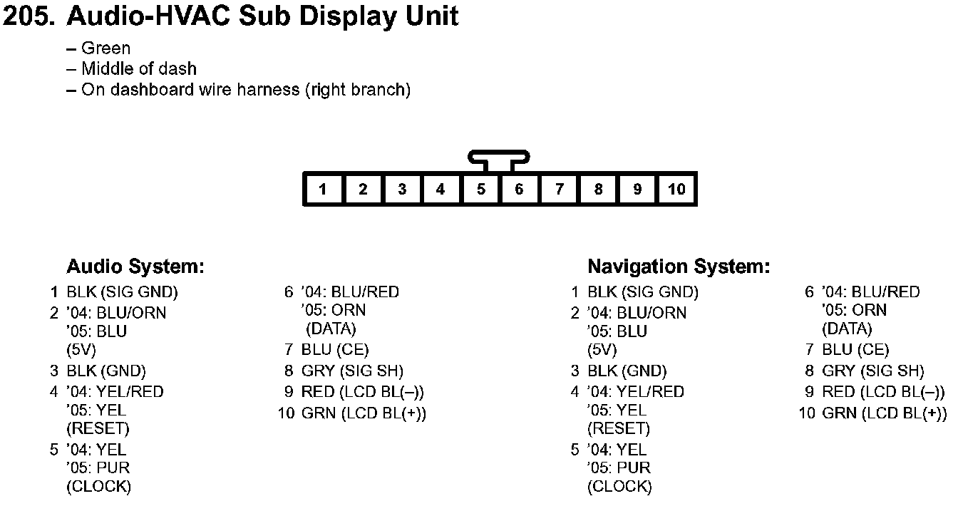 205. Audio-HVAC Sub Display Unit: