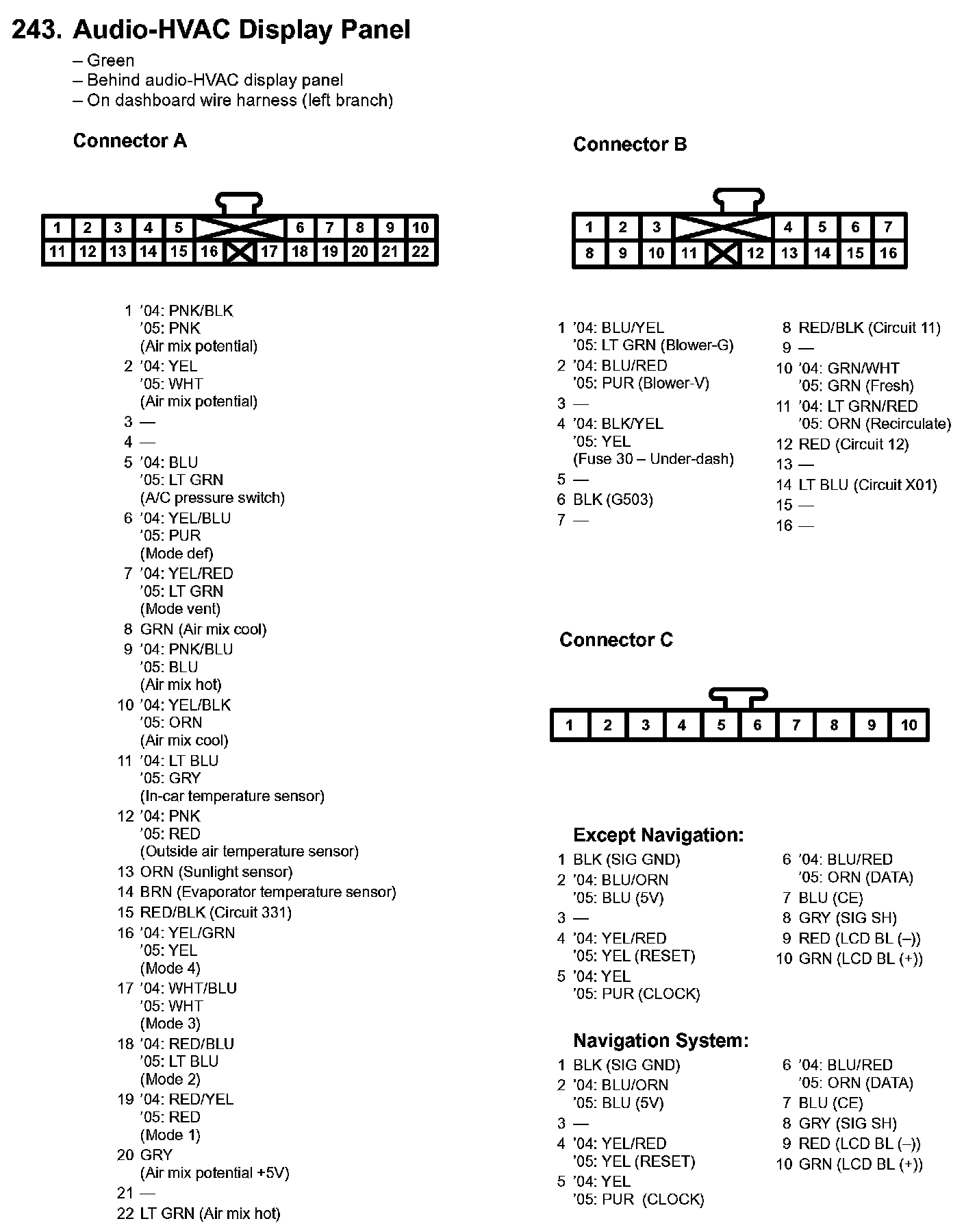 243. Audio-HVAC Display Panel: