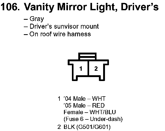 106. Vanity Mirror Light, Driver's:
