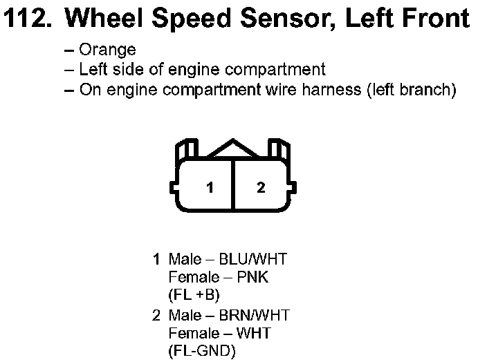 112. Wheel Speed Sensor, Left Front: