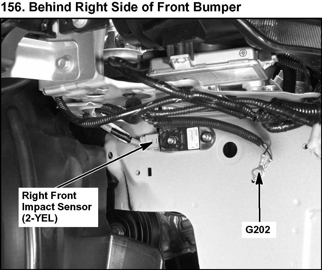 156. Behind Right Side Of Front Bumper: