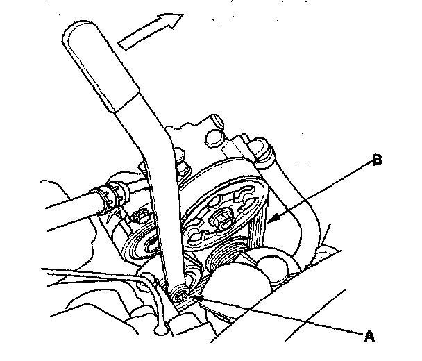 (B), then remove the drive belt.