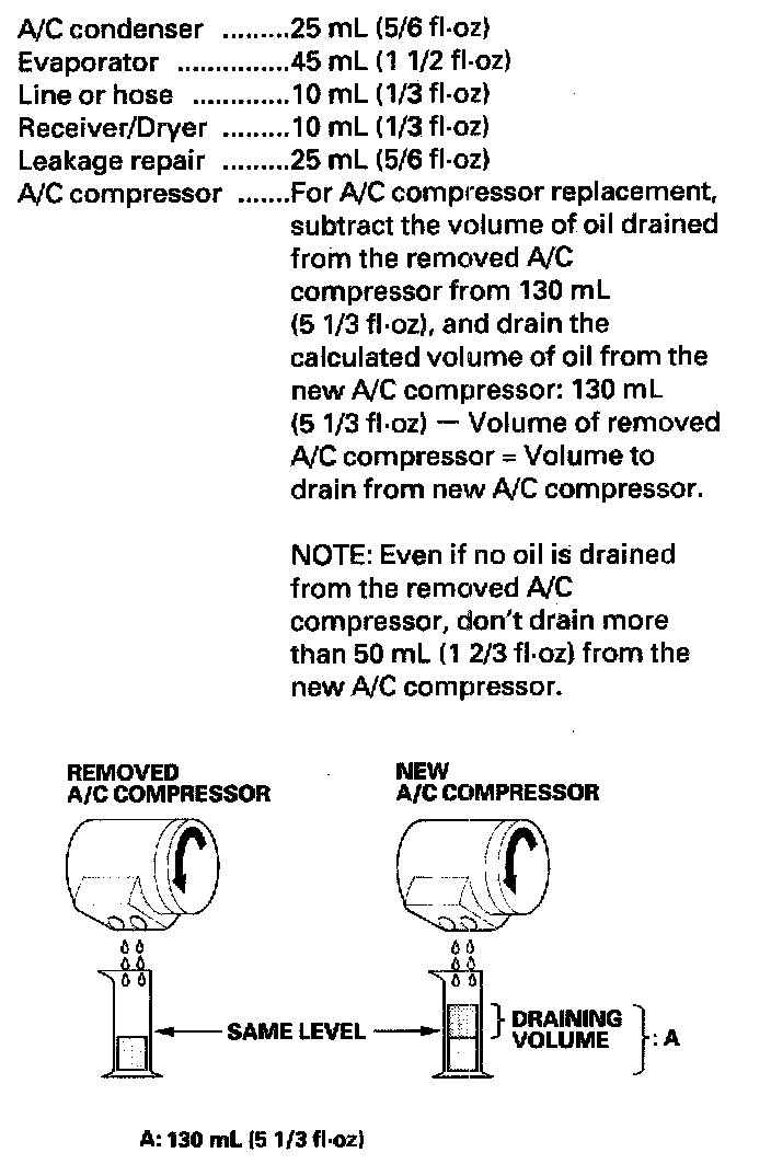 A/C Refrigerant Oil ReplacementRecommended PAG oil: KEIHIN SP-10