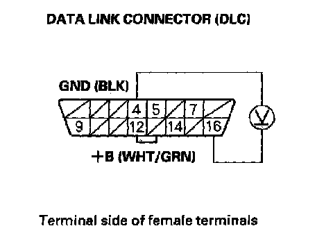 3. Measure voltage between DLC terminals No. 5 and No.16.
