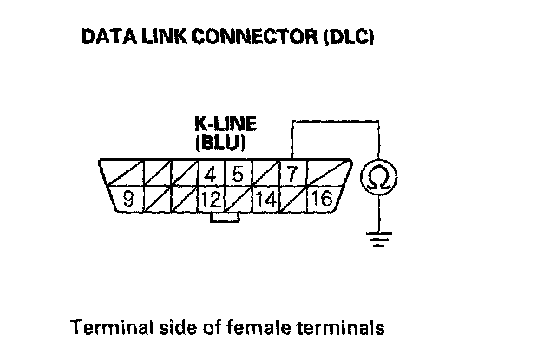 9. Check for continuity between DLC terminal No. 7 and body ground.