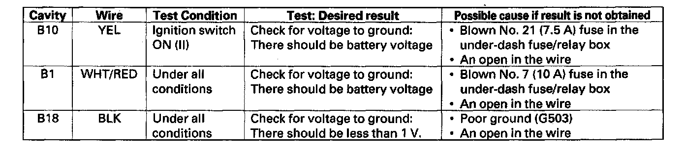 5. Disconnect the 18P connector from the gauge control module, and make these input tests at the connector.