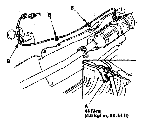 3. Remove the secondary HO2S (A), and the clips (B).