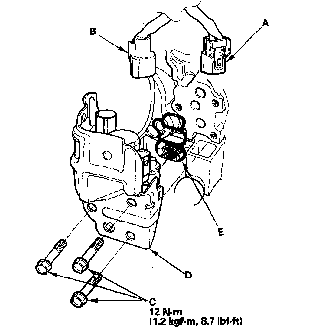 3. Remove the VTEC solenoid valve (D).