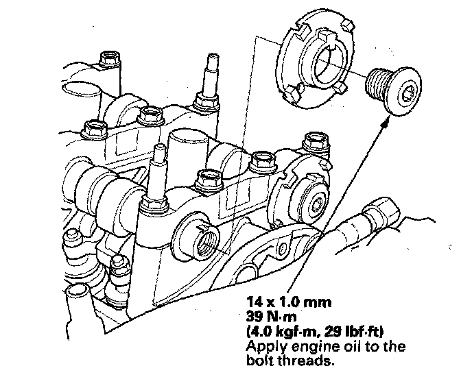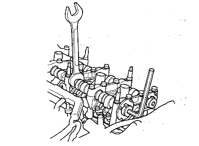 2. Hold the camshaft with an open-end wrench, then loosen the bolt.