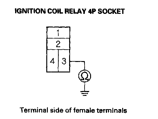 5. Check for continuity between ignition coil relay 4P socket terminal No. 3 and body ground.