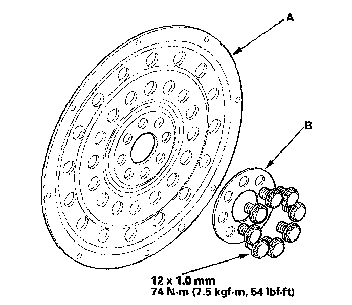 Install the drive plate and washer on the engine crankshaft, and tighten the eight bolts in a crisscross pattern in two or more steps.