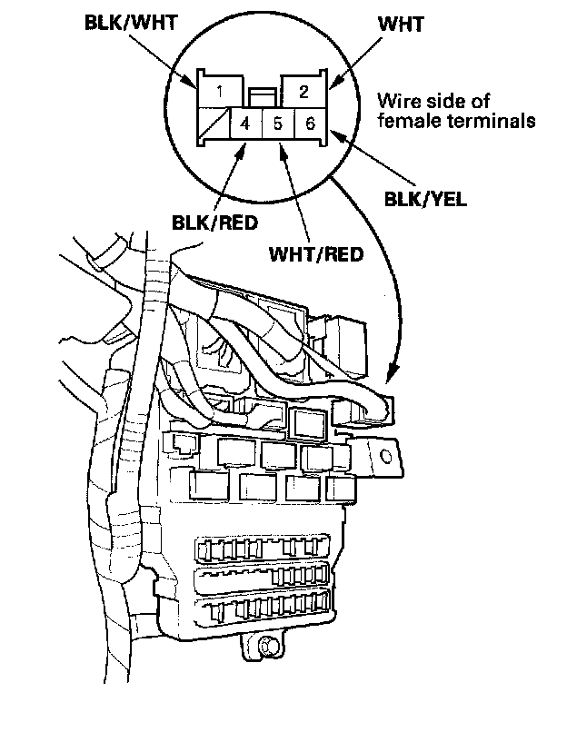 4. Disconnect the 6P connector from the driver's under-dash fuse/relay box.