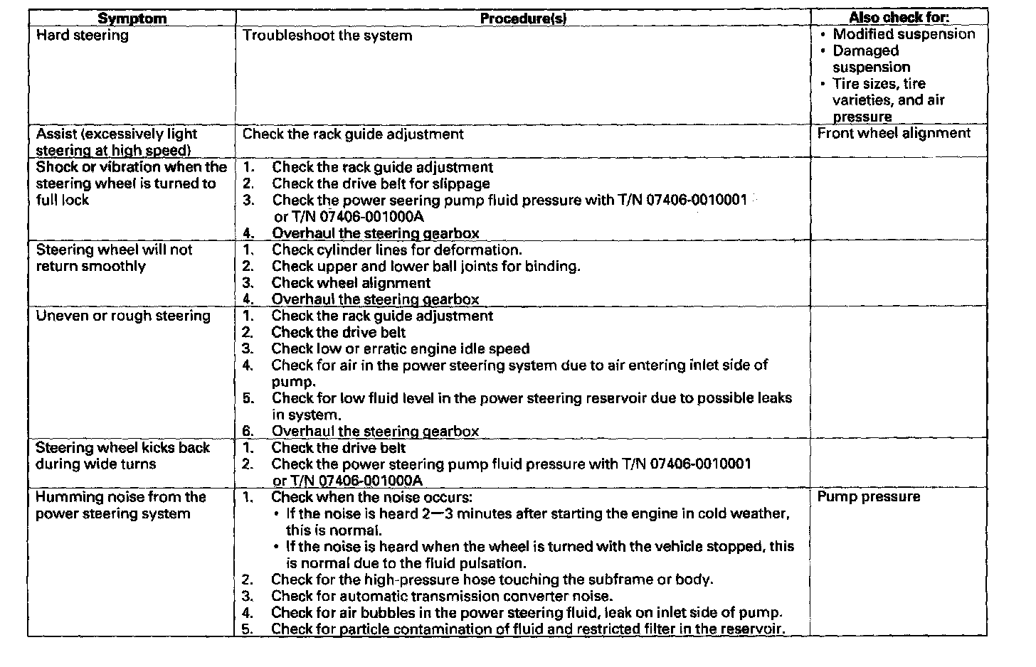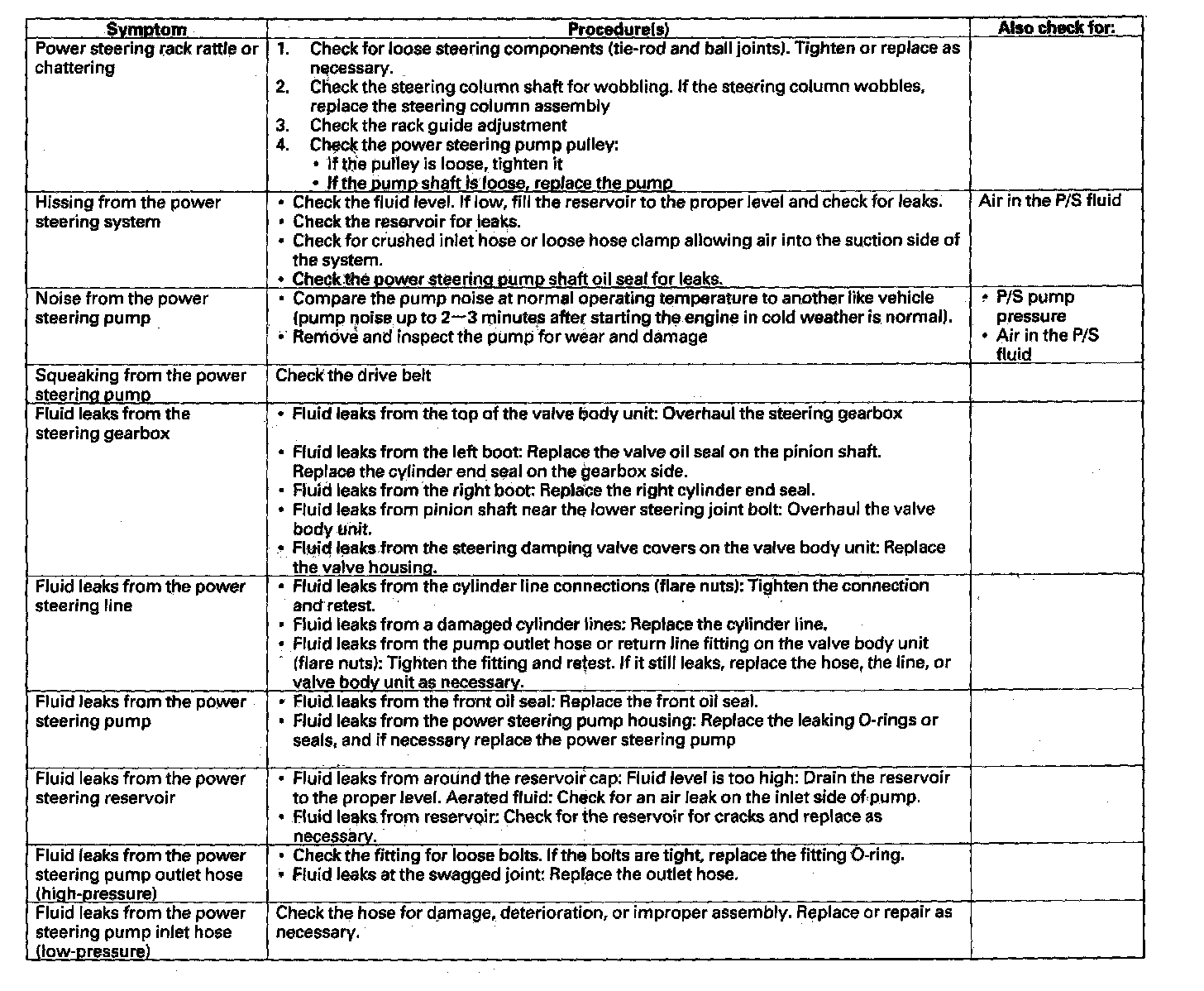Find the symptom in the chart, and do the related procedures in the order listed until you find the cause.