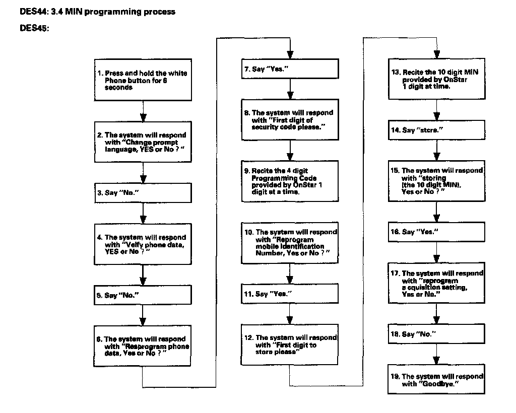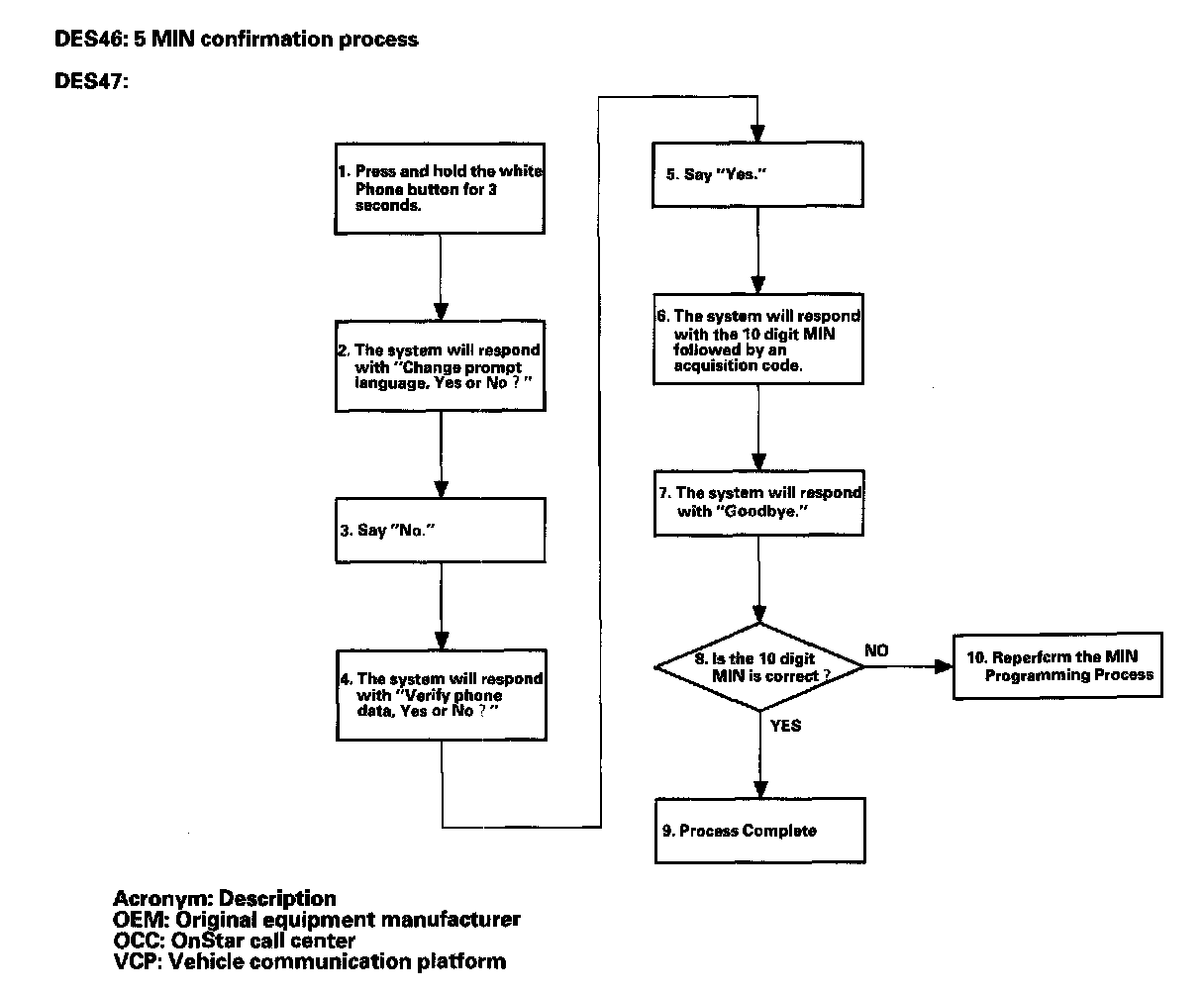 The dealer will do the MIN programming process and MIN confirmation process if a new MIN is provided by OnStar technical support.
