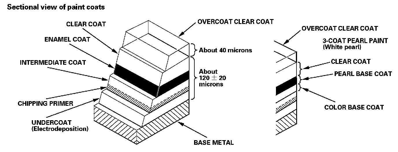 The 3-coat,3-bake (3C,3B) overcoat clear coats paint finish gives the Acura RL a deep gloss and stunning finish. This manual provides information on paint defect, repair, and refinishing. Throughout, the objective is to explain in a simple yet comprehensive manner the basic items you should know about paint repairs.