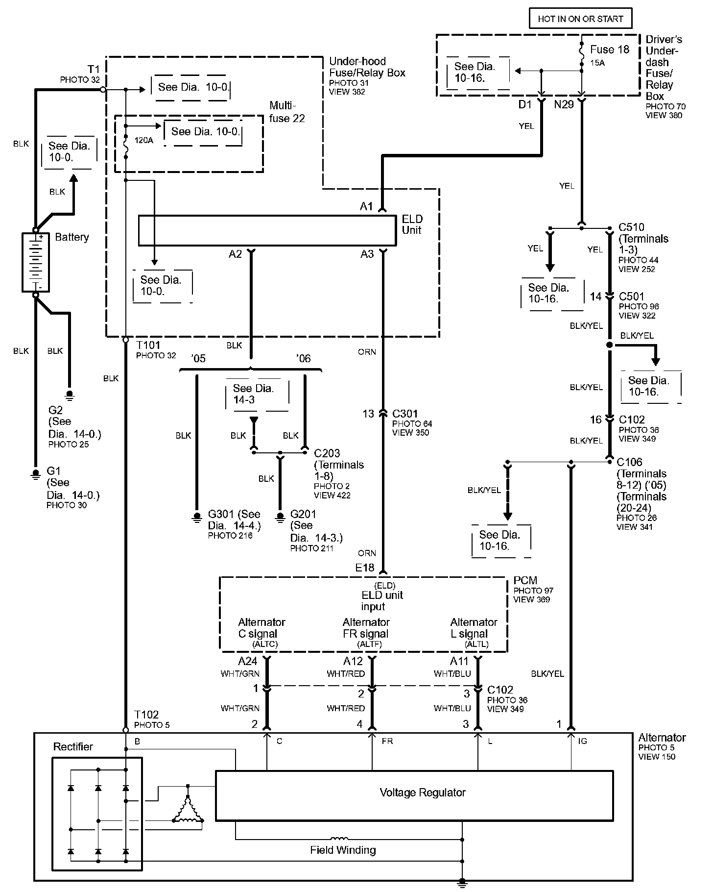 Connector Views: Connector terminal views (references to VIEWS) referred to within these diagrams can be found at Connector Views by View Number. Connector Views By View Number
