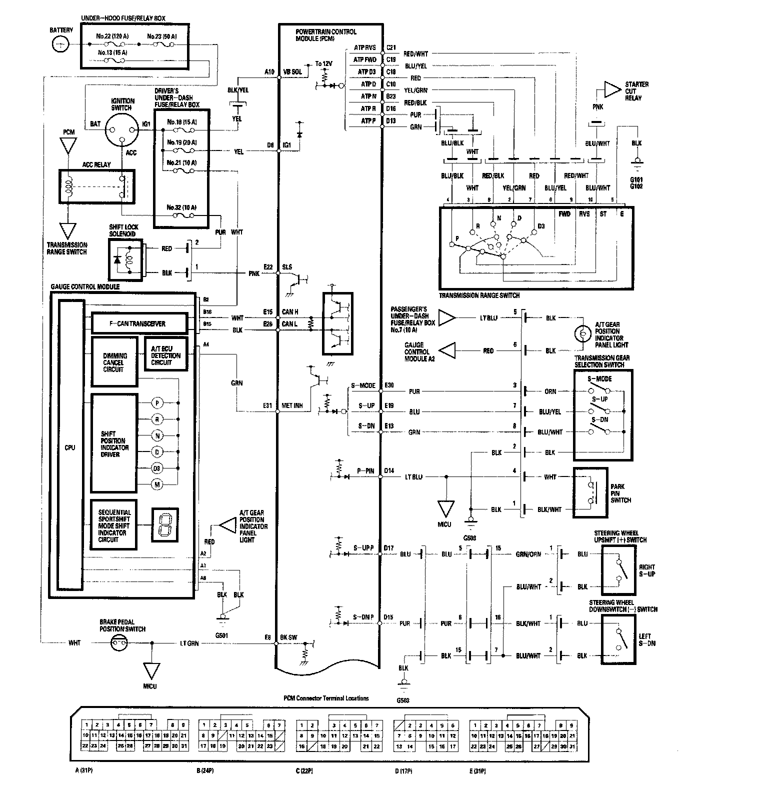 PCM A/T Control System Circuit Diagram: