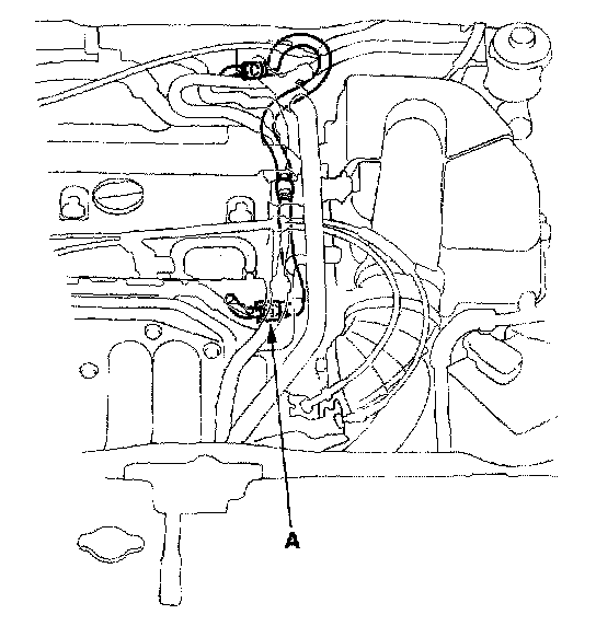 2. Remove the glove box, then remove PGM-FI main relay 2 (FUEL PUMP) (A) from the under-dash fuse/relay box.