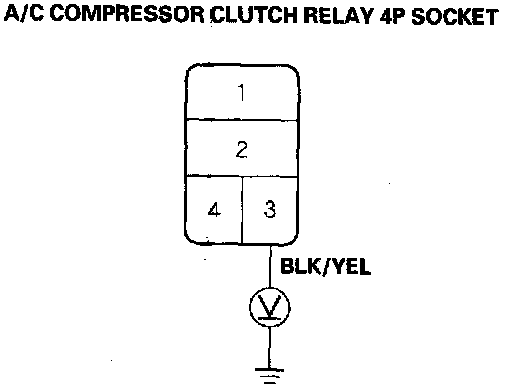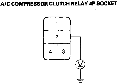 4. Measure the voltage between the No.2 terminal of the A/C compressor clutch relay 4P socket and body ground.