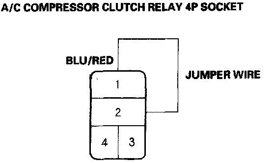 5. Connect the No.1 and No.2 terminals of the A/C compressor clutch relay 4P socket with a jumper wire.