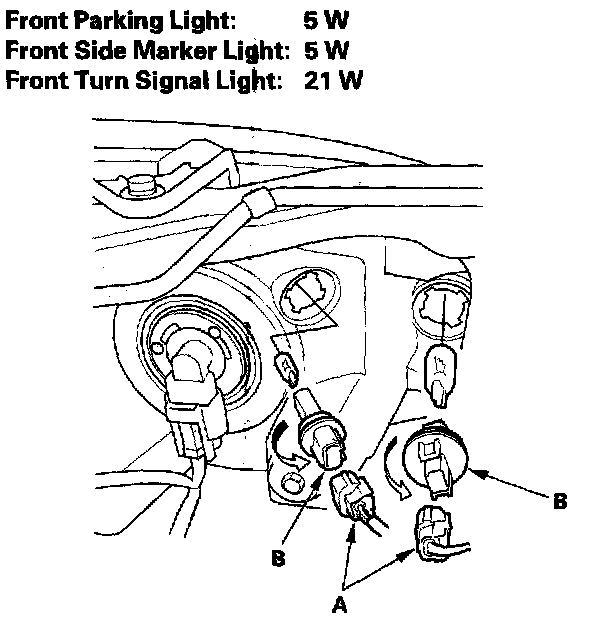 Front Parking Lights, Front Side Marker Lights and Turn Signal Lights ('05-06 models)1. Disconnect the connectors (A) from the light.