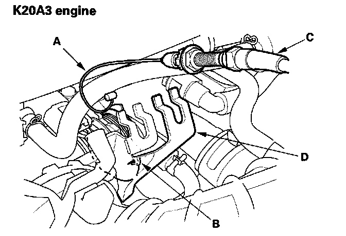 Throttle Cable Removal/Installation1. Remove the throttle linkage cover (A) (K20A3 engine only).