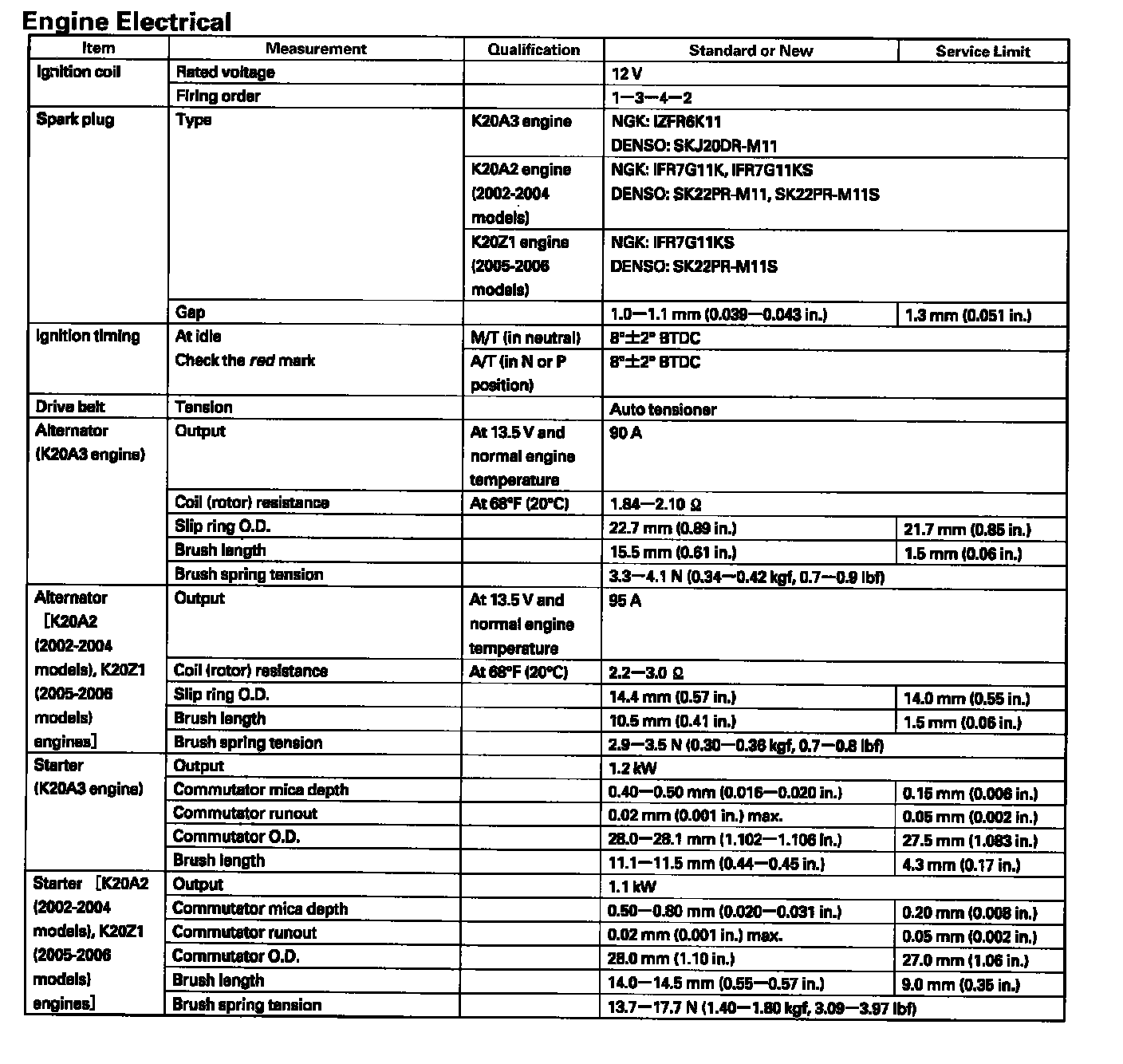 Ignition System: Specifications
