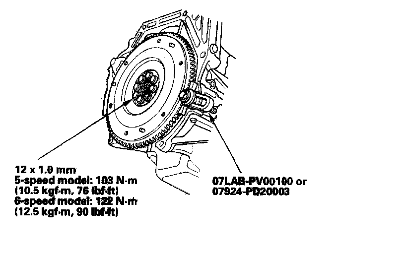 FlywheelInstall the special tool, then torque the flywheel mounting bolts in a crisscross pattern in several steps.