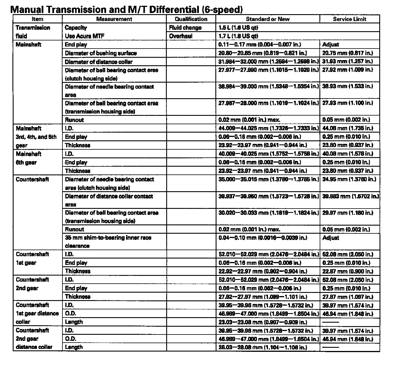 Manual Transmission and M/T Differential (6-speed):