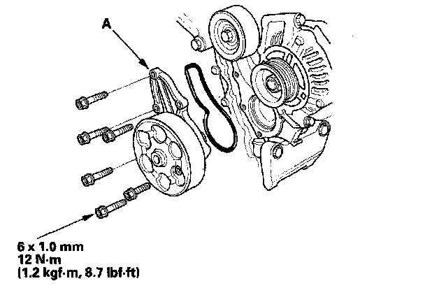 Water PumpK20A3 engine: Remove the six bolts securing the water pump, then remove the water pump (A).