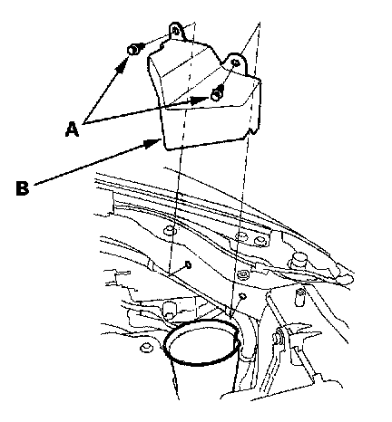 5. Remove the clips (A), then remove the air intake cover (B).